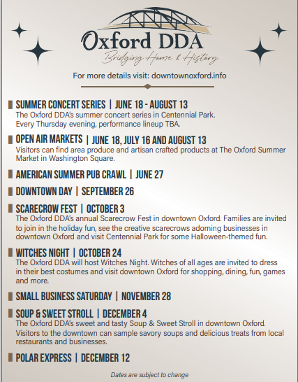The DDA and Village of Oxford will be having a budget workshop on April 8th, 2026.