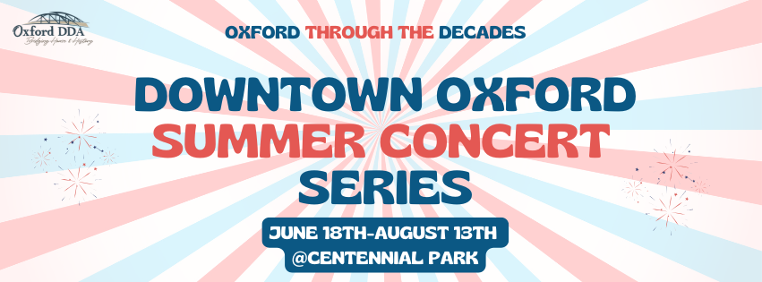 Our concert theme this year is OXFORD THROUGH THE DECADES and we are going to be groovin’ all summer long at Centennial Park!